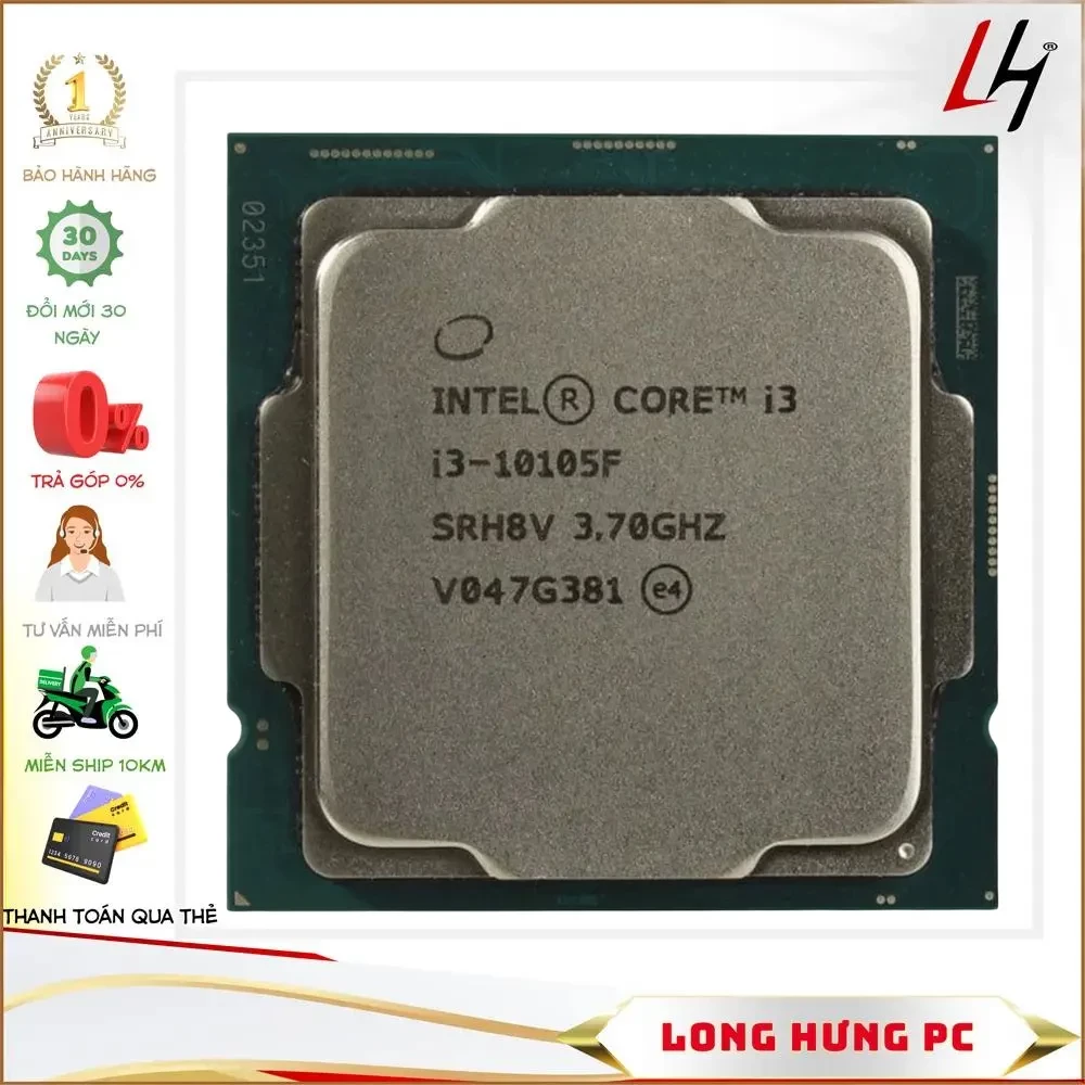 CPU Intel Core i3 10105F hiện đang được bán sỉ lẻ tại Long Hưng PC. Hãy liên hệ hotline của chúng tôi để được tư vấn, hỗ trợ nhiệt tình nhé.