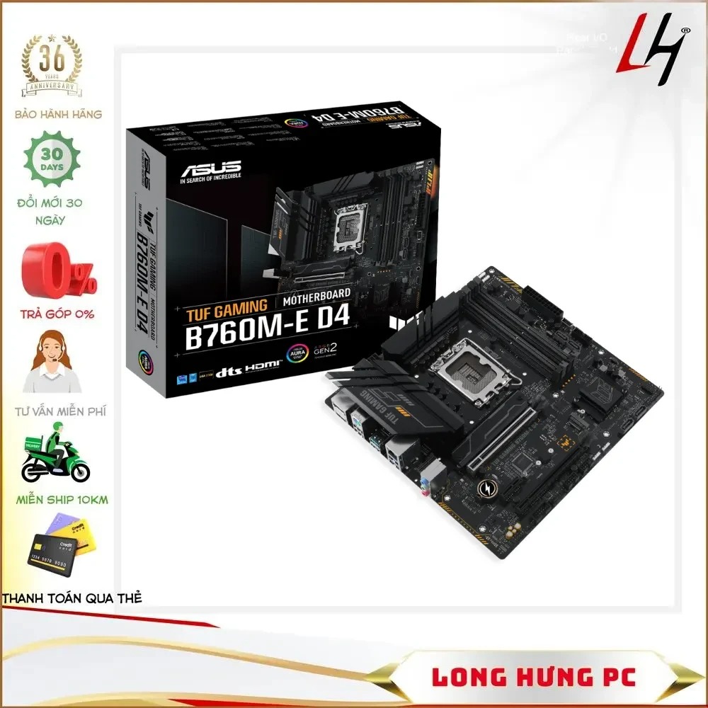 Asus Tuf Gaming B760M-E DDR4 là bo mạch chủ tầm trung sử dụng chipset B760 và socket LGA1700, hỗ trợ CPU Intel Core thế hệ 1/13/14. Sản phẩm trang bị 2 khe RAM DDR4 dung lượng tối đa 128GB, cùng khe PCIe 4.0 cho VGA và SSD tốc độ cao. Thiết kế chuẩn Tuf siêu bền, linh kiện chất lượng cao và hệ thống tản nhiệt tối ưu giúp đảm bảo hiệu năng ổn định, độ bền lâu dài, phù hợp cho các bộ PC gaming và làm việc hiệu quả.