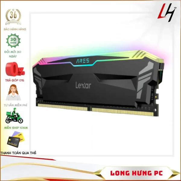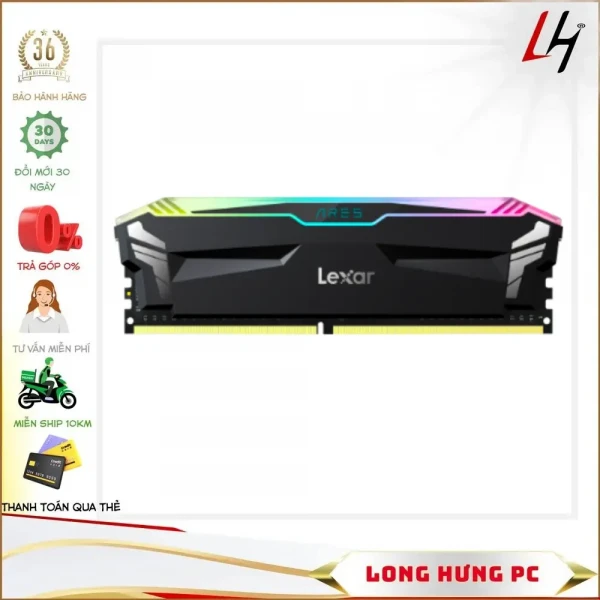 RAM Lexar ARES RGB 8GB DDR4 3200MHz Black là lựa chọn lý tưởng cho game thủ và người dùng phổ thông nhờ tốc độ 3200MHz ổn định cùng dung lượng 8GB đáp ứng tốt nhu cầu đa nhiệm cơ bản. Sản phẩm nổi bật với thiết kế tản nhiệt kim loại màu đen chắc chắn, kết hợp dải RGB đẹp mắt, vừa tăng hiệu suất vừa mang lại vẻ ngoài hiện đại cho bộ pc gaming.